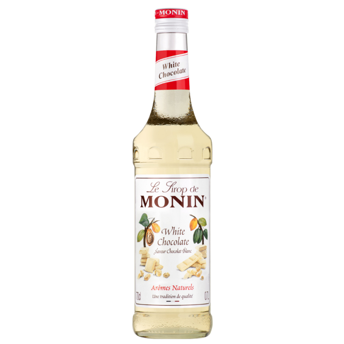 Monin White Chocolate - Biela čokoláda sa dobre mieša s inými chuťami a môže sa používať v teplých alebo studených dezertných nápojoch, aby vykúzlil lákavé lattes, milkshakes, mochas, a frappes. Keď prezident Olivier Monin požiadal o sirupovú príchuť, ktorá by mu pripomínala značku bielej čokolády spoločnosti Nestlé Galak®, tak sa zrodil sirup Monin White Chocolate. Derivát čokolády, pretože biela čokoláda nie je z kakaových zŕn, ale vyrába sa z kakaového masla, čo jej dodáva príjemnú maslovú chuť.